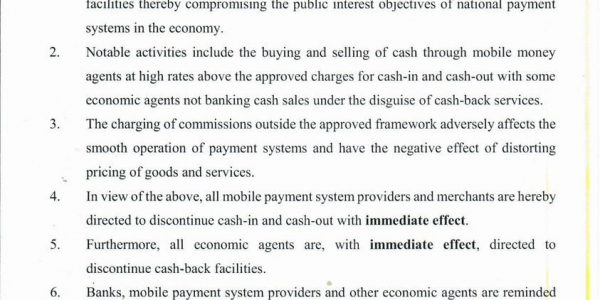 RBZ has Restored Mobile Money Cash-in and Cash out facilities with new terms and restrictions.