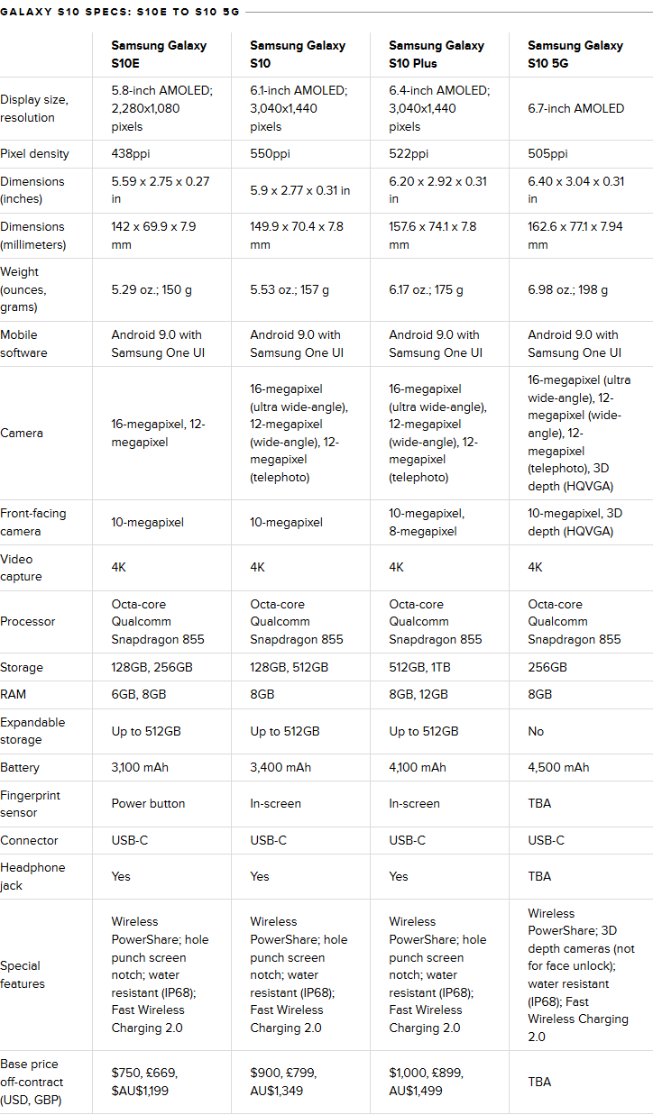 Here’s everything the S10 family will offer you: